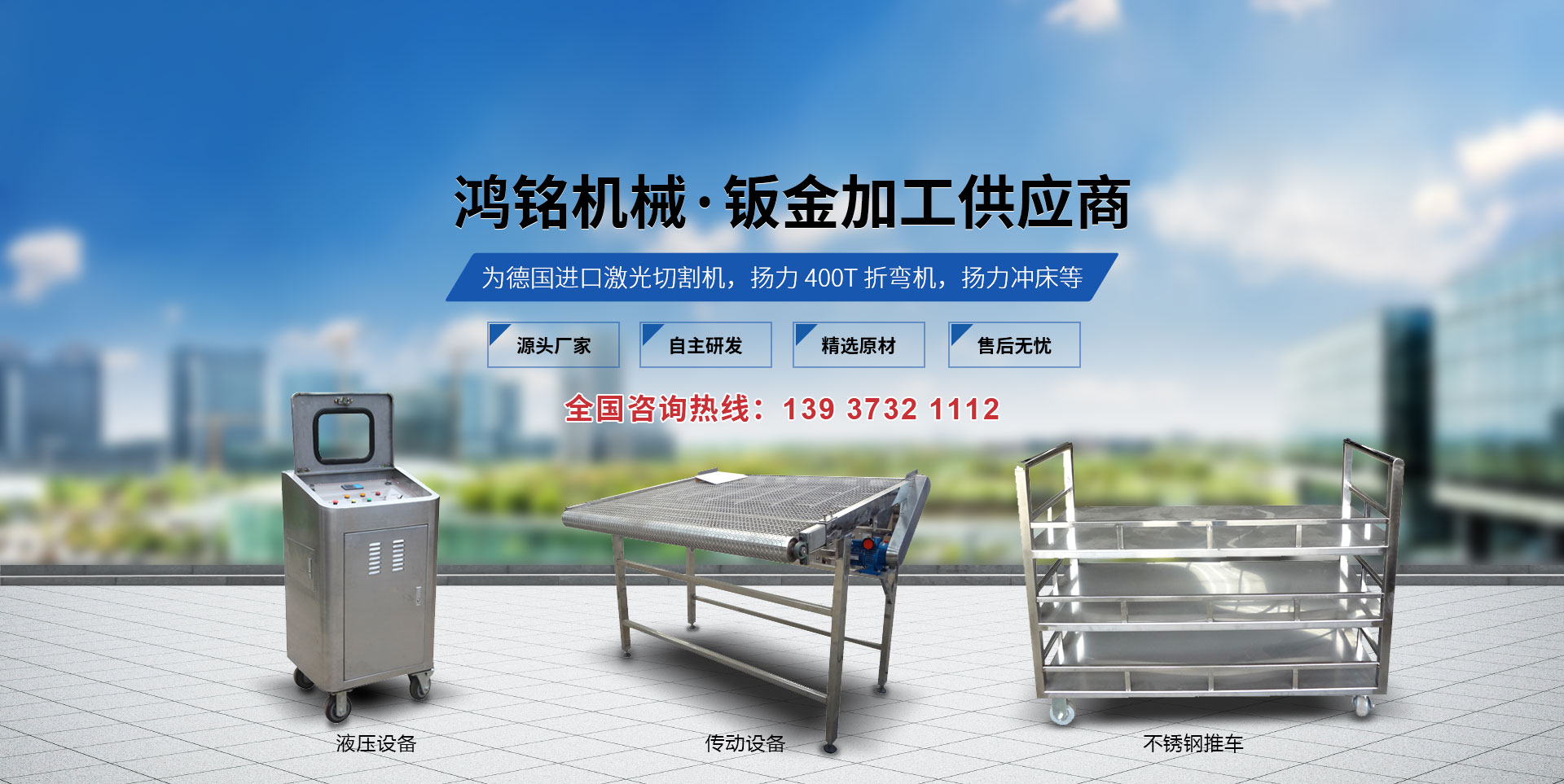 新鄉市鴻銘機械有限公司成立于2009年,占地面積8000平方米,位于新鄉市衛濱區南環路,地理位置優越,交通便利。 本公司設備為德國進口激光切割機,揚力400T折彎機,揚力沖床等設備。主要從事鈑金加工、及生產各類金屬鈑金零部件及生產各類沖壓零件?! 」鹃L期與國內外大型企業合作深受新老客戶的贊賞,同時公司對外承接各類鈑金加工業務(標準鈑金件與非標鈑金件),先后為多家知名企業配套加工鈑金,公司也可根據客戶的需要代為設計,尤其對精度、外觀要求高的產品有獨到的生產經驗。 我們本著"科學管理、全員參與、持續改進、滿足客戶"的質量方針來生產我們的每一件產品。為了在市場競爭中立于不敗之地,公司以質量求生存,以設備保精度。歡迎新老客戶到本公司實地考察。  本企業建立以來,以"質量保證,信譽保證,交貨及時,價格合理"為宗旨,贏得了客戶的一致好評。面對市場經濟的挑戰,公司將以產品和服務參與市場競爭,為廣大客戶提供鈑金加工平臺。